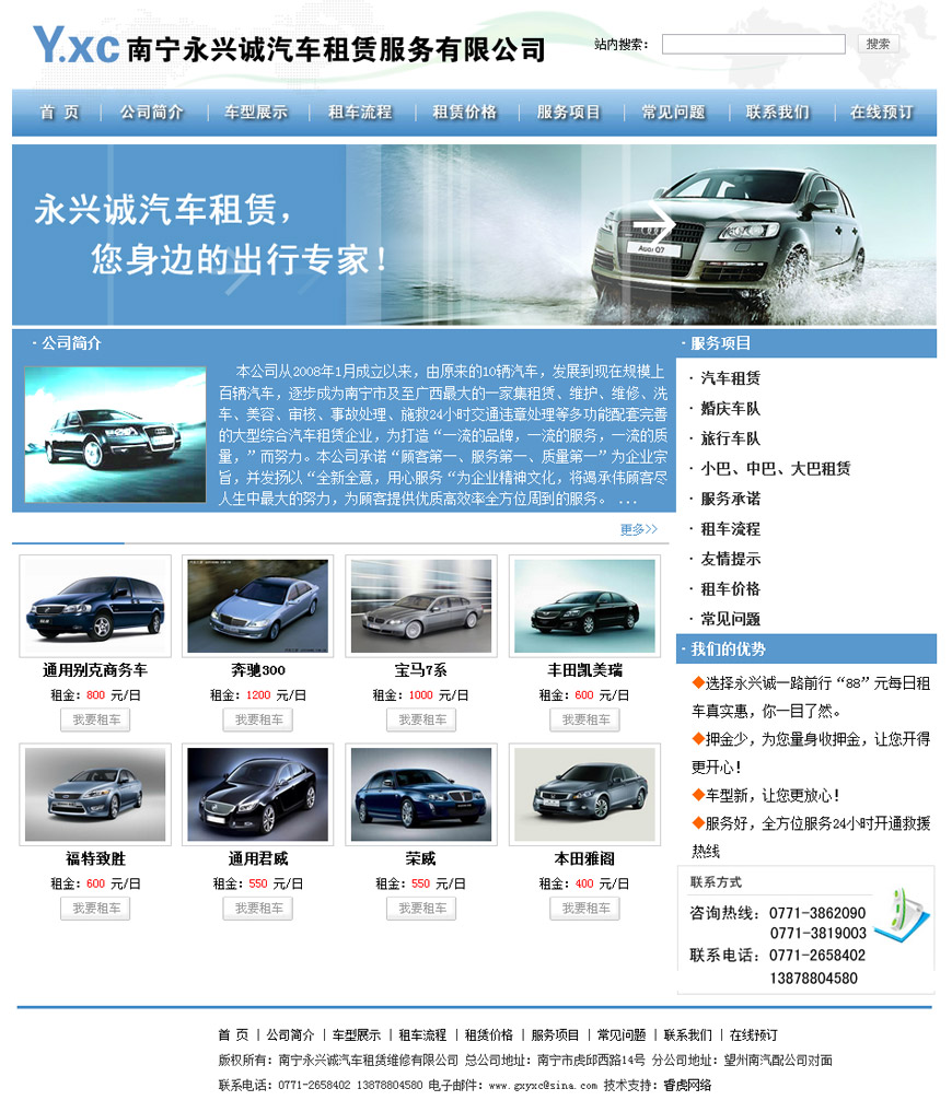 本公司从2008年1月成立以来,由原来的10辆汽车,发展到现在规模上百辆汽车,逐步成为南宁市及至广西最大的一家集租赁、维护、维修、洗车、美容、审核、事故处理、施救24小时交通...